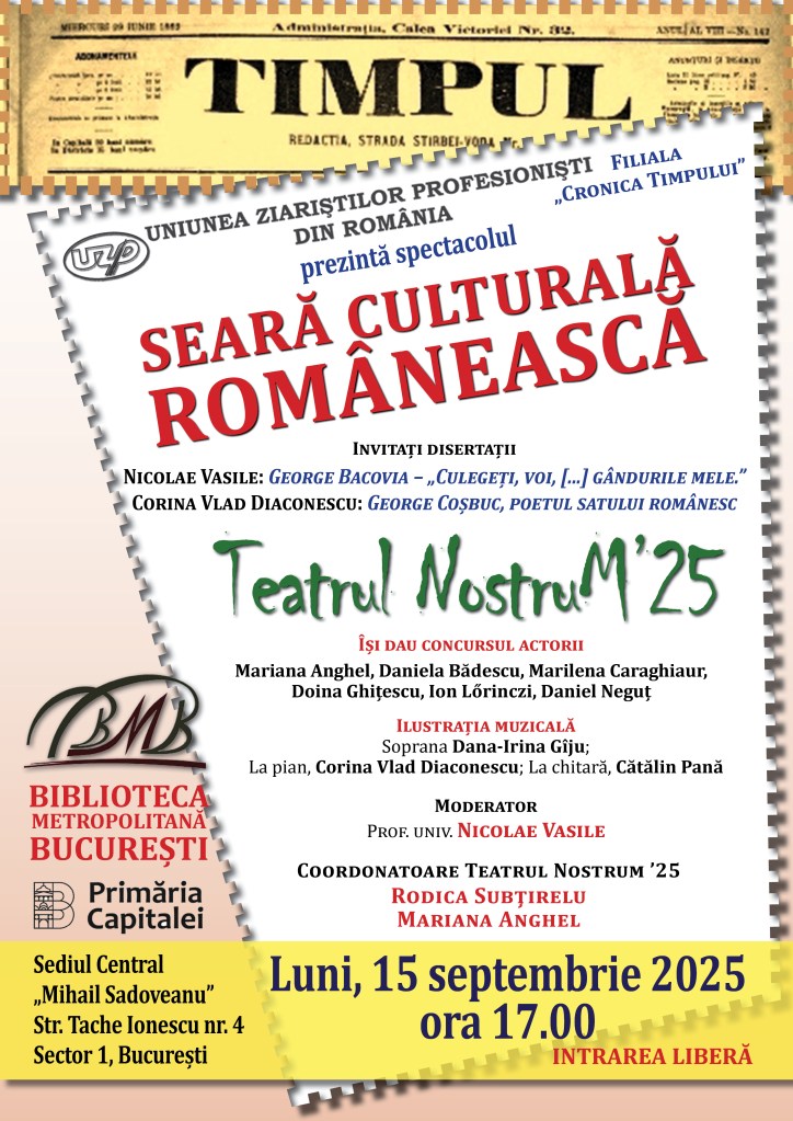 Nicolae VASILE, în numele Filialei “Cronica Timpului”, Revistei “Cronica Timpului” și a Teatrului “Nostrum – 2025”.